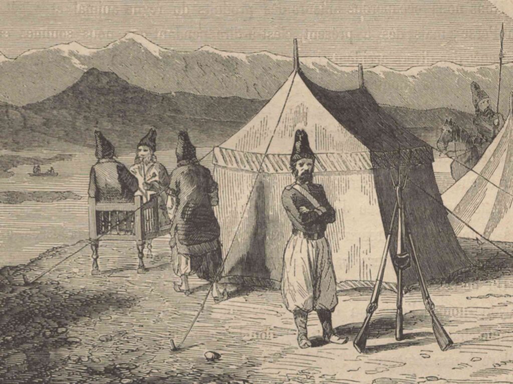 Campement person au bord de l'Araxe, frontiere perso-russe